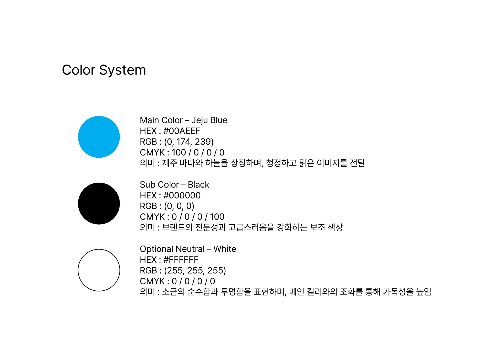 제주라는 지리적 상징성과, 바다에서 온 소금의 청정함을 직관적으로 느낄 수 있도록 시각화했습니다.